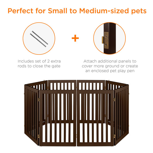 Versatile 31.5in Freestanding Wooden Pet Barrier with Secure Door and Stability Feet