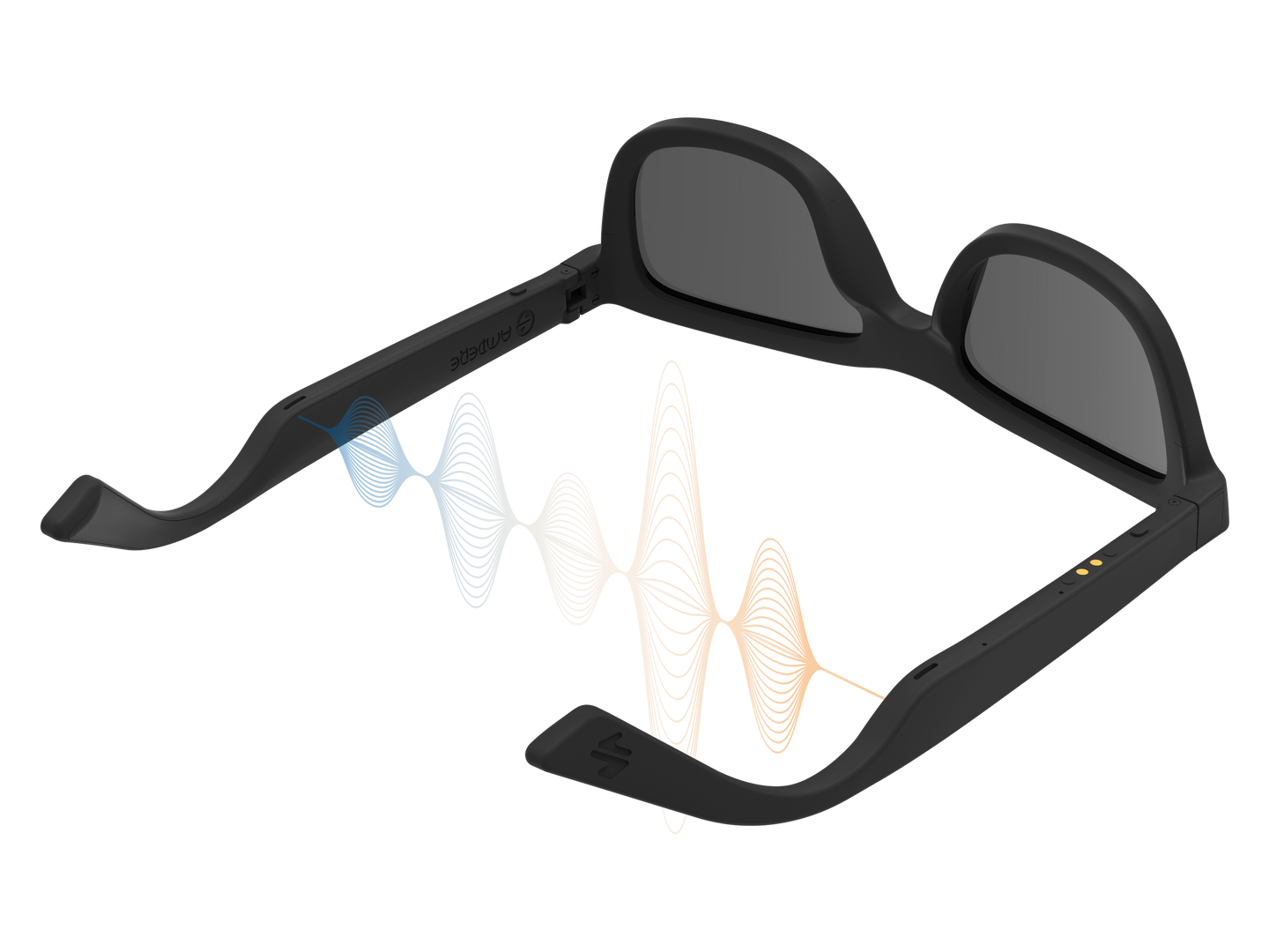 These sunglasses can sync wirelessly with your phone to play music and receive calls. Each pair includes a charging cord, providing 8 hours of continuous use. Complete with a noise-cancelling microphone, water resistance, and open-ear audio, as well as touch controls.