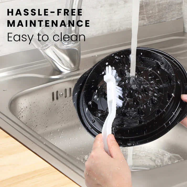 The chicken shredder keeps all the juices contained in the base, preventing any mess on your countertop. It fits perfectly on the bottom or top rack of standard-sized dishwashers, or you can use a dish brush for easy clean-up